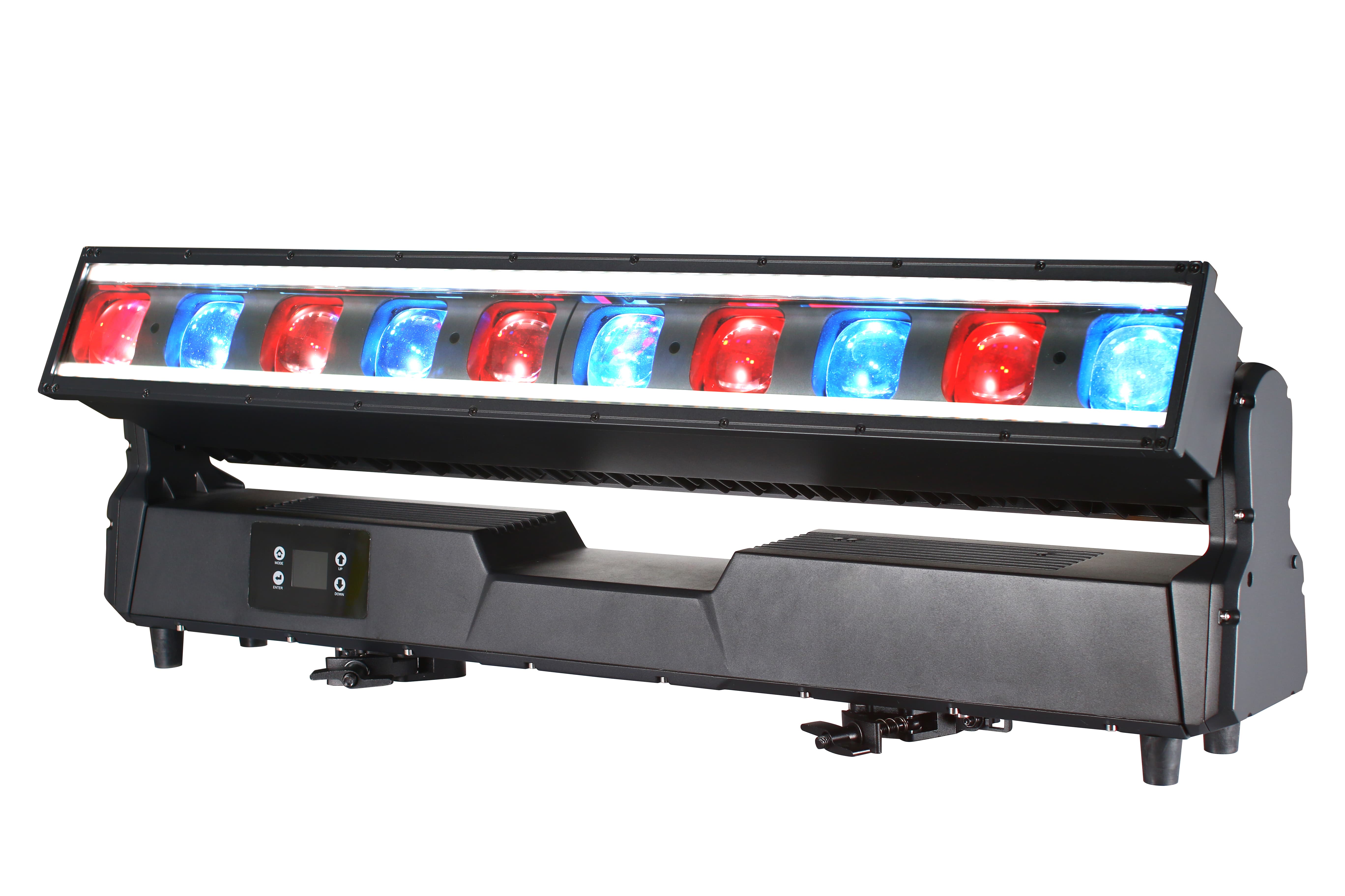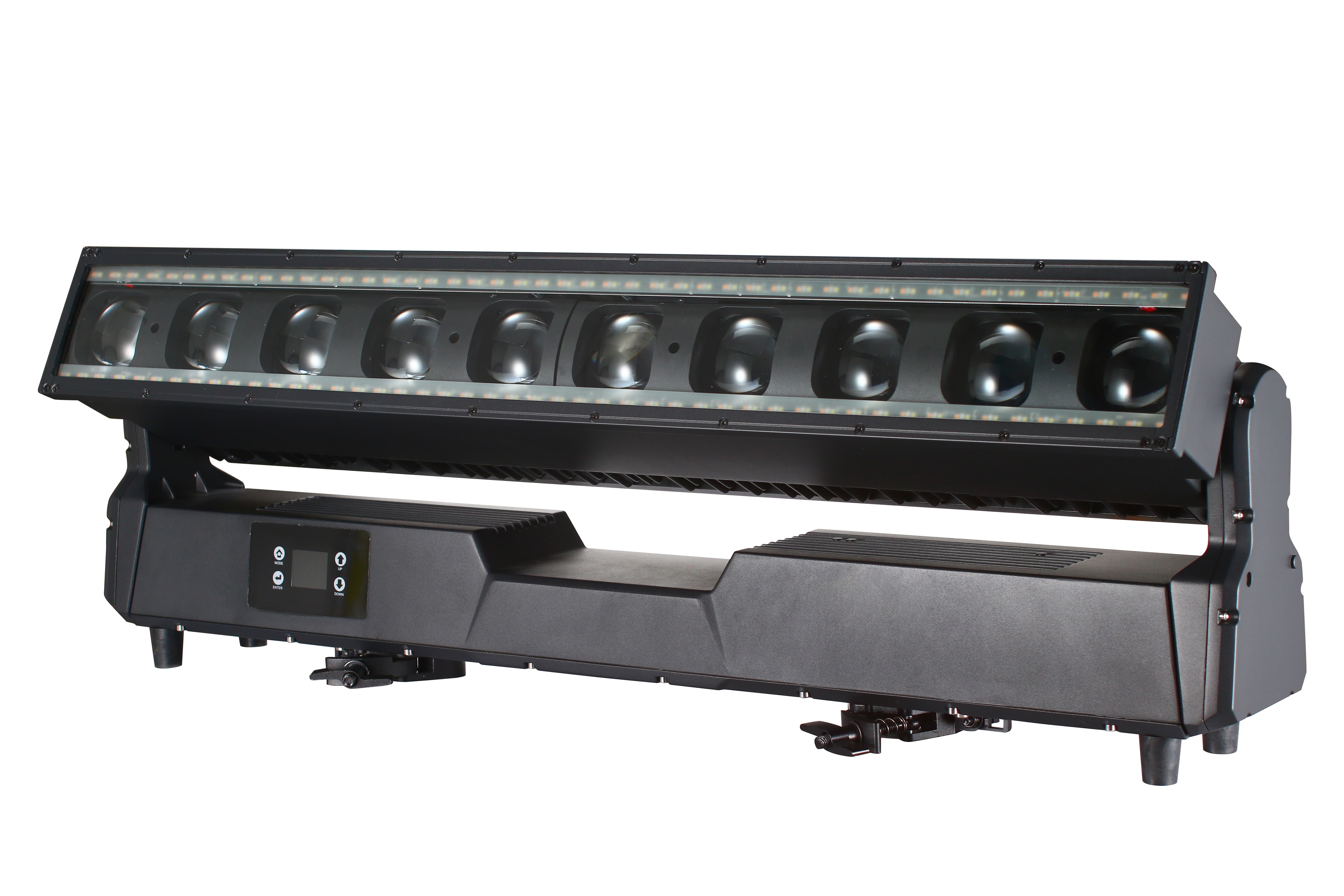 采用多种LED组合而成,10颗大灯珠升级为60W RGBW LED光引擎,可投射出更锐利的光束。其余区域采用单边12区独立控制的LED灯条,具备出众的RGBW混色功能。 1060是一款集光束、频闪、染色效果于一体的多功能效果灯,当多台灯具无缝拼接时,等距排列的灯珠射出的光束可覆盖广阔区域,大大满足演唱会、综艺节目等场所的灯光需求。