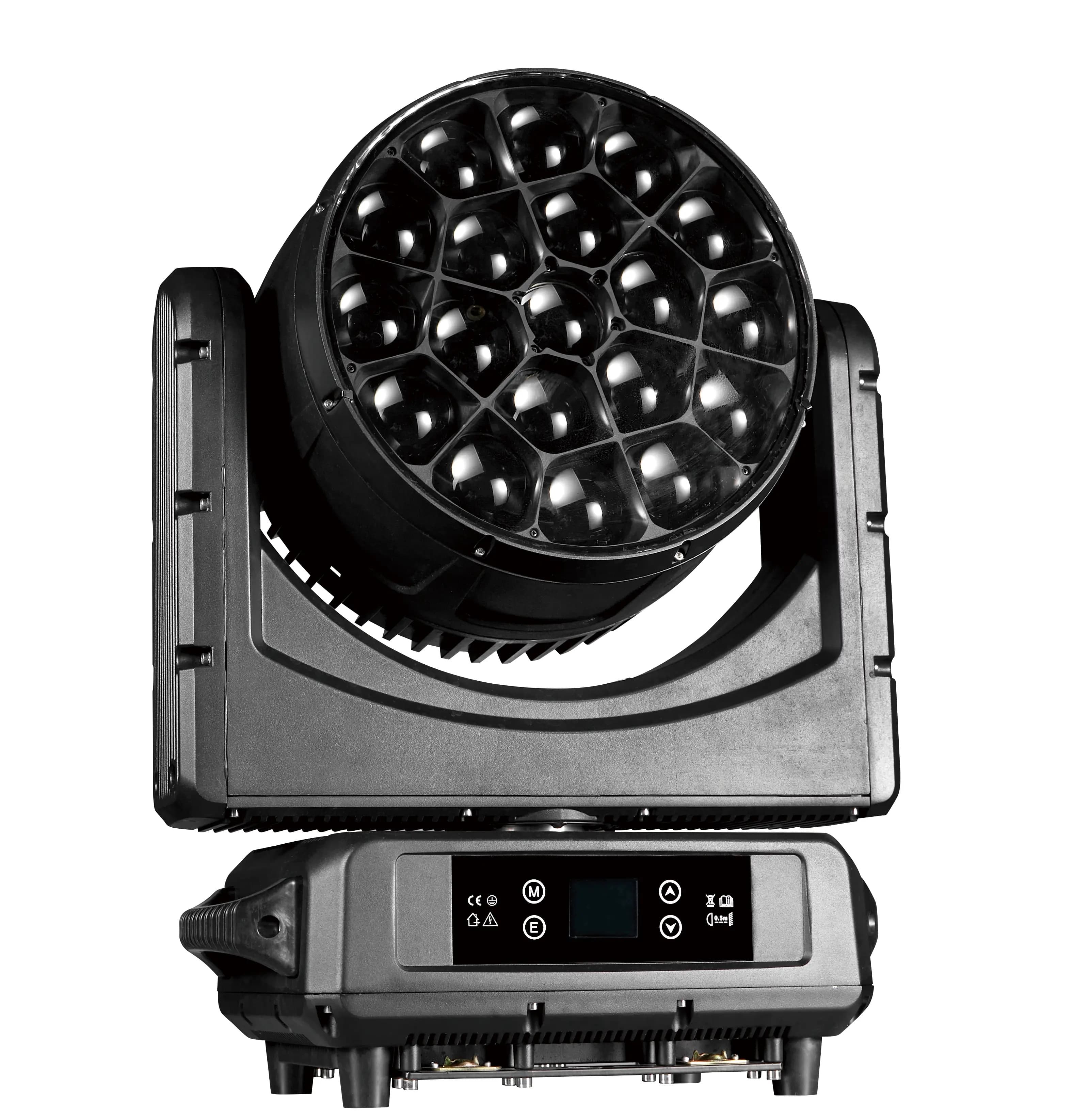LED摇头染色灯 ,由19颗40W RGBW四色LED组成光源,卓越的色彩宏效果,轻松打造强大的光束,为舞台增添动感。多种通道模式可选,并通过DMX、RDM,逐点操控灯珠,令灯光随音乐起舞,灯光师可灵活切换颜色、角度、灯效。缩放角度3.5°-50°的线性调焦系统、多种速度的频闪效果配以0-100%的顺畅调光功能,可制造多种充满动感的迷幻灯效,全方位适应不同的舞台应用需求。是一款高性能的摇头灯,集强大的光束、染色功能于一体,配置均匀的混色系统,具有颜色校正系统,保证颜色输出一致,可以满足各种场所和应用,如演唱会、电视演播室、研讨会、艺术展览等,是特意为专业灯光表演而设计的二合一摇头灯!