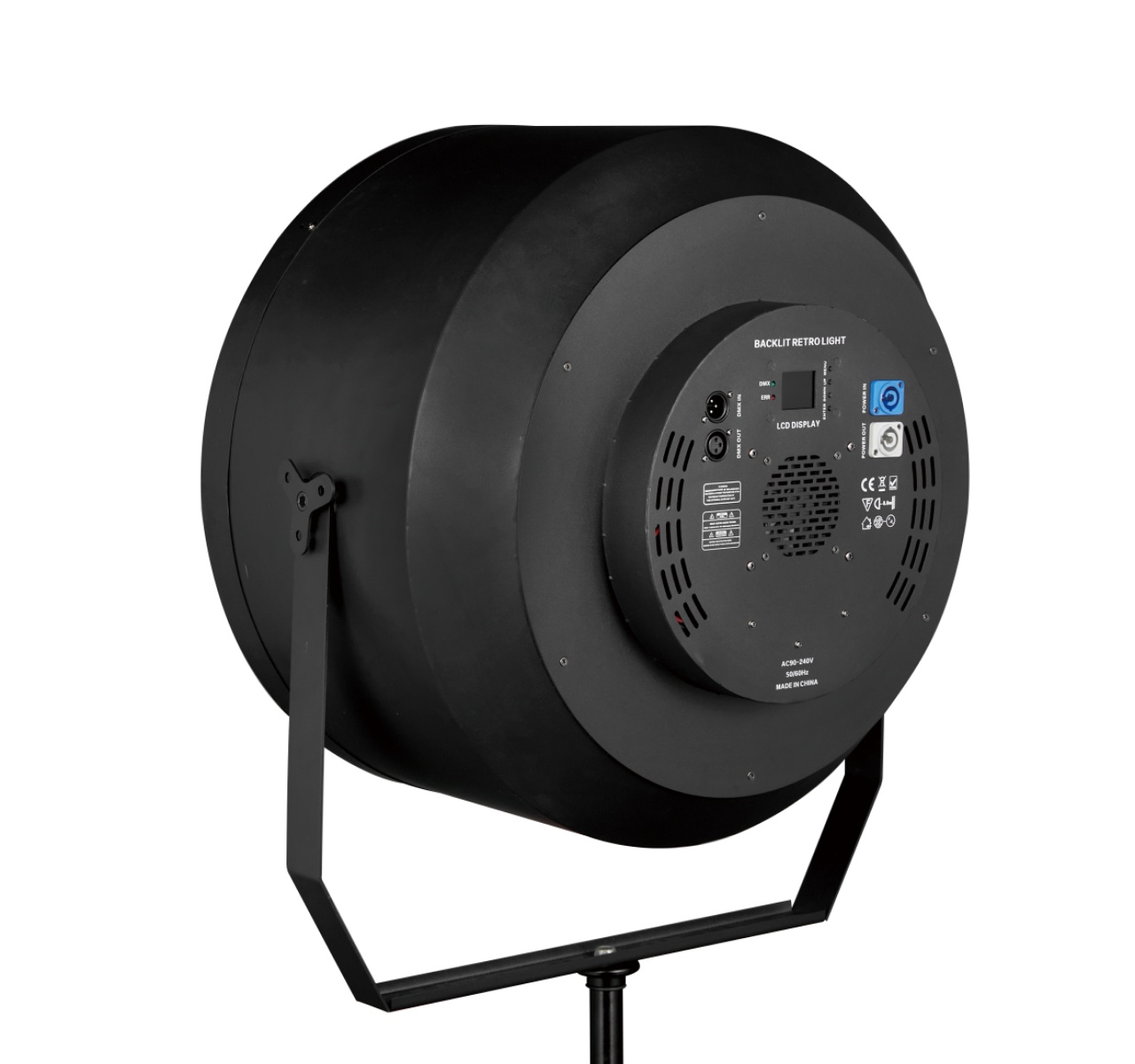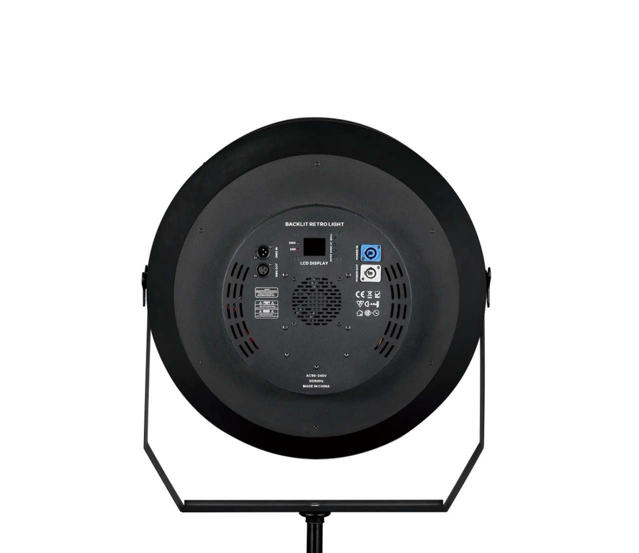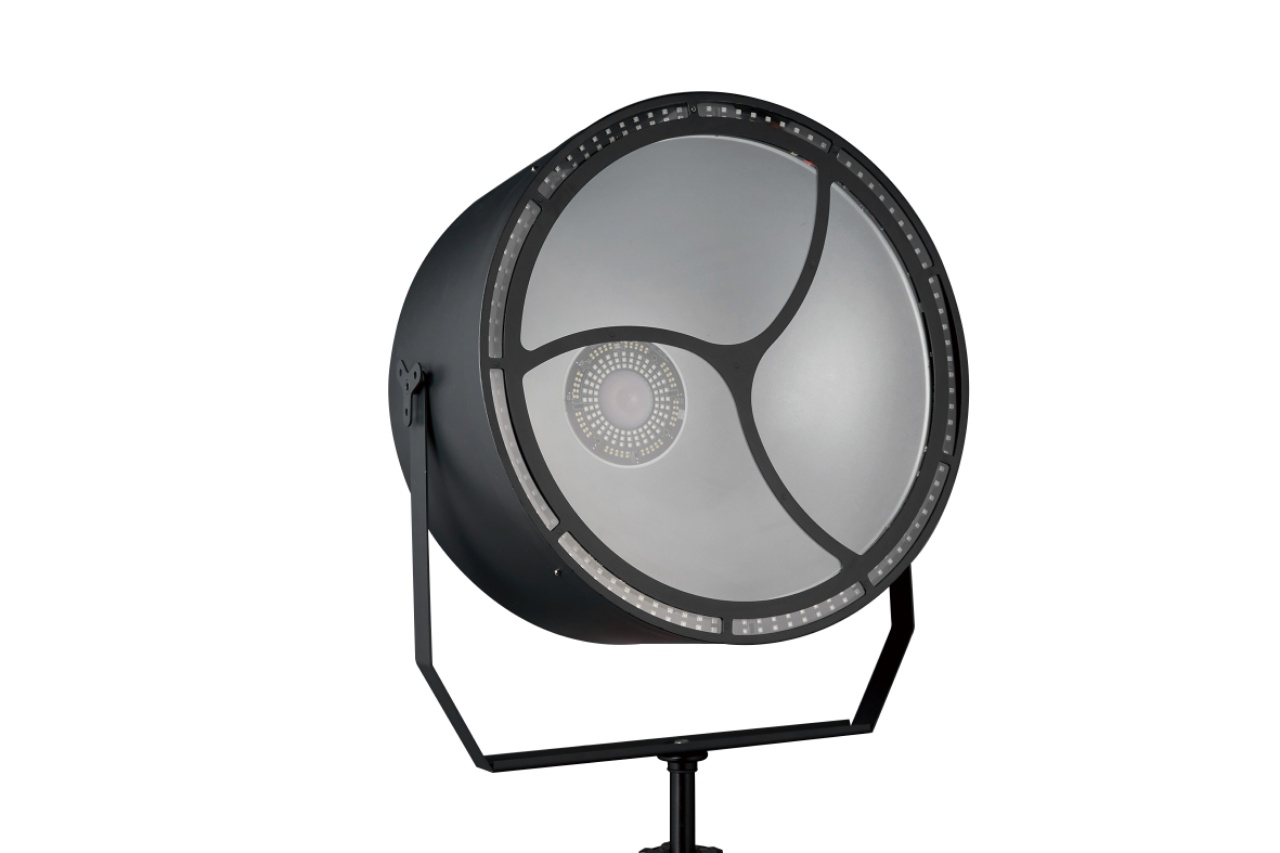 全合金结构,灯体设计轻巧时尚,优雅大方。最大特点是传统光源和 LED 的紧密搭配组合,采用LED200W灯珠,周边采用全彩 LED 作背景光达到超凡的视觉效果,灯头配有保护装饰网,不刺 眼无炫光。可快速悬挂,亦可配脚架使用,灯光柔和适用于电视台、演播厅、流动演出等大型娱乐 场合使用。也可以应用于商业照明或装饰用灯,除 DMX 控制之外还有强大的 RDM 控制和无线 DMX 控制技术。