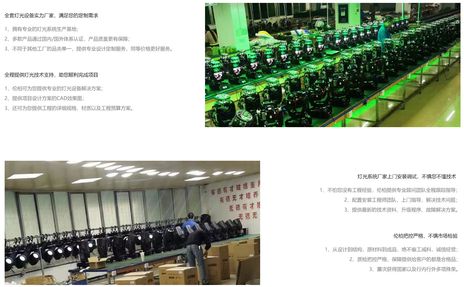 “高品质、重信誉、守货期”是公司的经营之道。 在新时代不忘初心,继续将品品质视为企业的生命,用稳定可靠并且耐用的产品,为客户创造最大价值,做一个有良知中国舞台灯光企业。